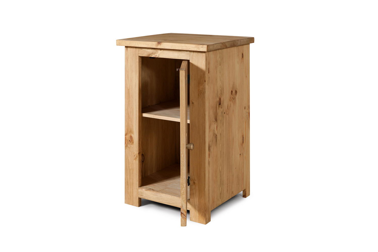 Корпус, полка и дверца изготовлены из массива сосны.