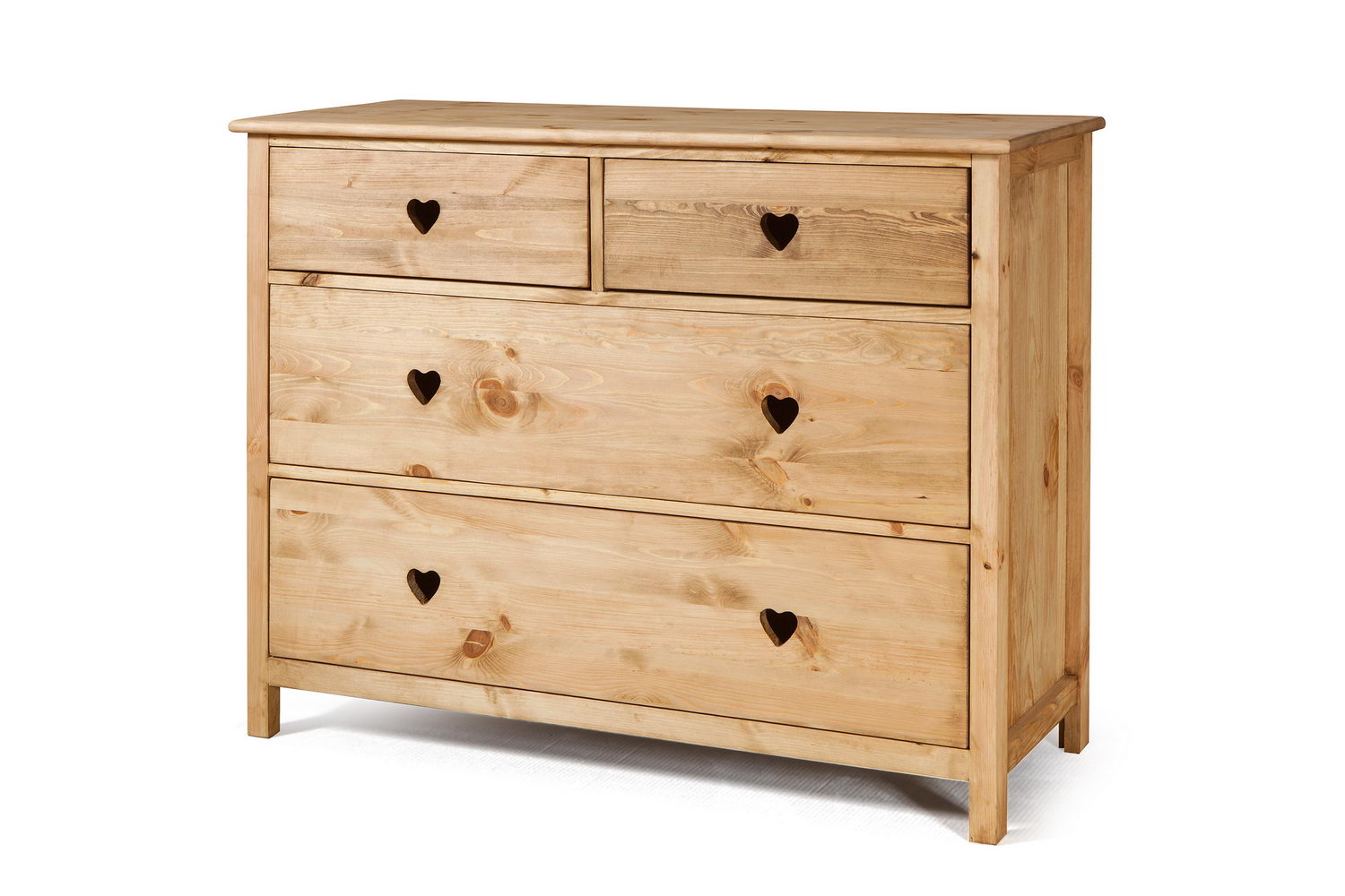 Корпус, ящики, полка и дверцы изготовлены из массива сосны.