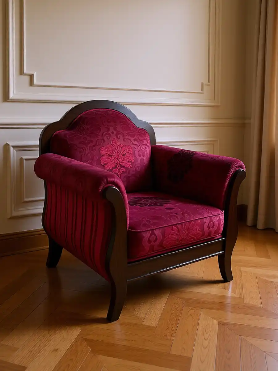 Изящное кресло «Ольгерд» — элегантное дополнение к интерьеру в духе «Луи Филипп». Отличается утончённой формой спинки и подлокотников, точёными декоративными элементами и низкими изогнутыми ножками, которые придают ему аристократичную лёгкость. Идеально сочетается с диванами и кушетками из той же серии — рекомендуем комплектное оформление для гармоничного ансамбля.