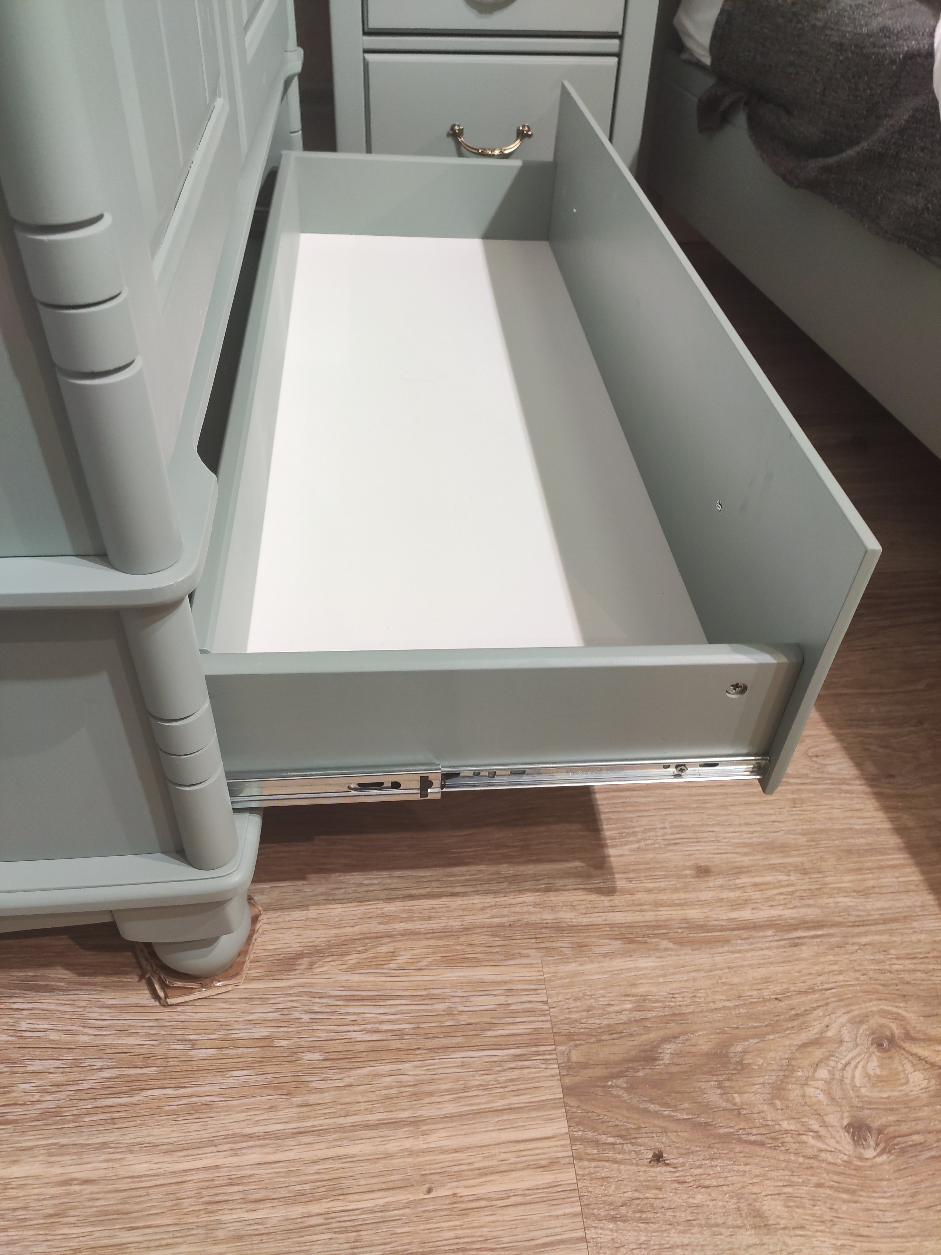 Материал - сосна, задняя стенка и дно ящика - ДВП белого цвета.