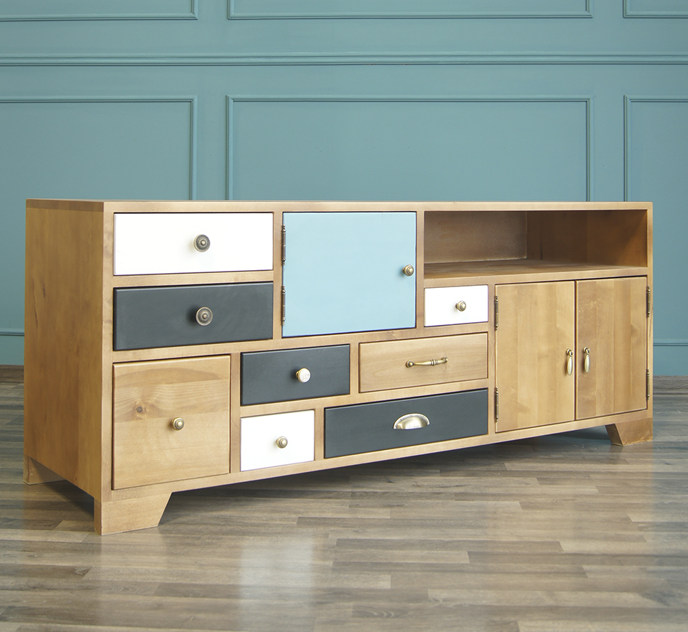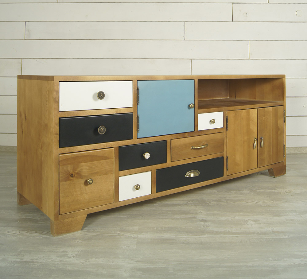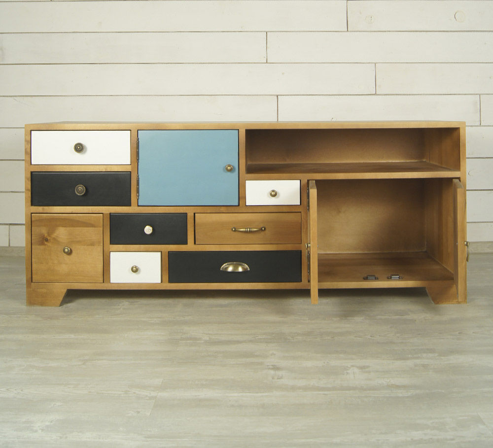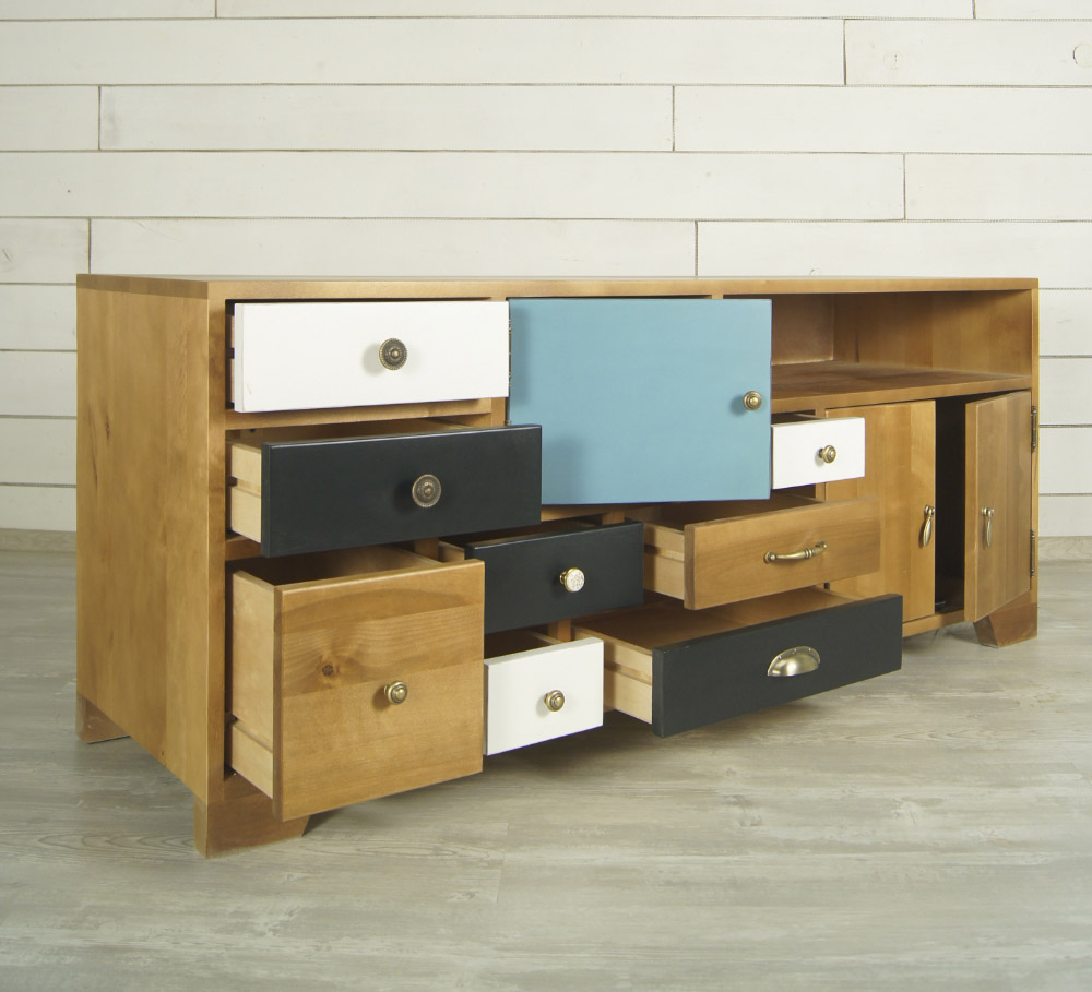 Комод оснащен 8 ящиками разных форм, цветов и размеров, что создает ощущение уникальности и домашнего уюта,