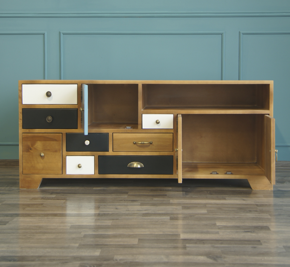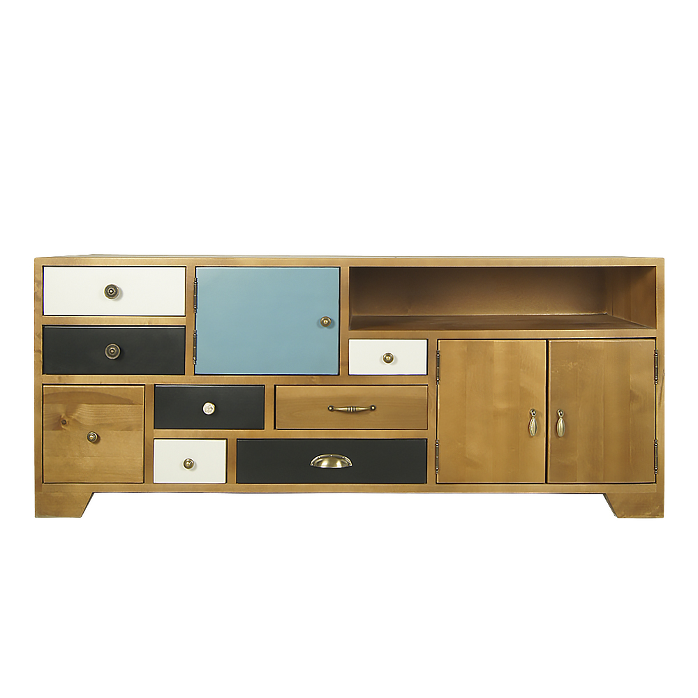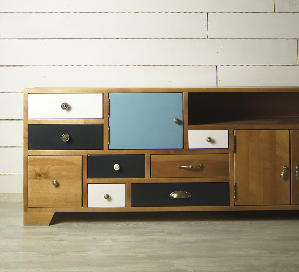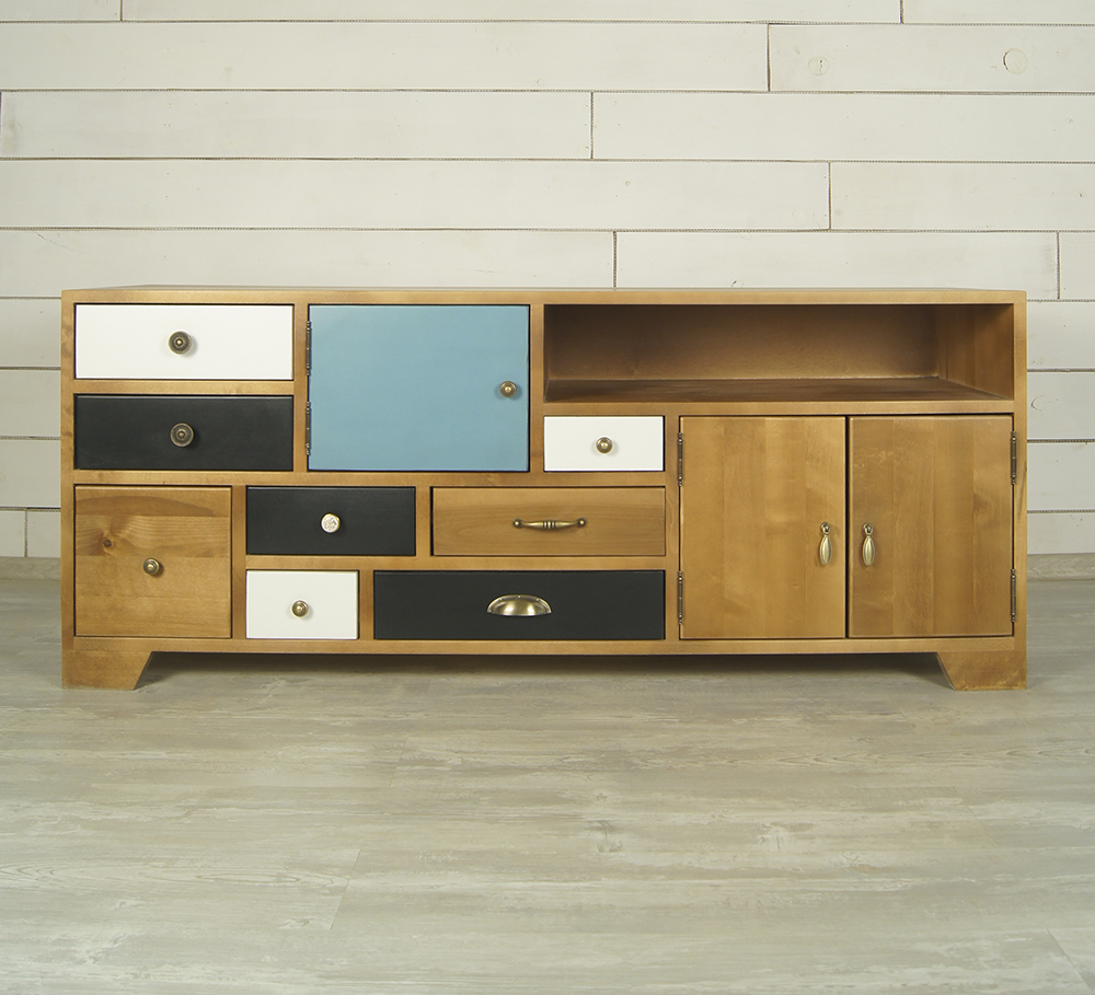 Комод оснащен 8 ящиками разных форм, цветов и размеров, что создает ощущение уникальности и домашнего уюта,