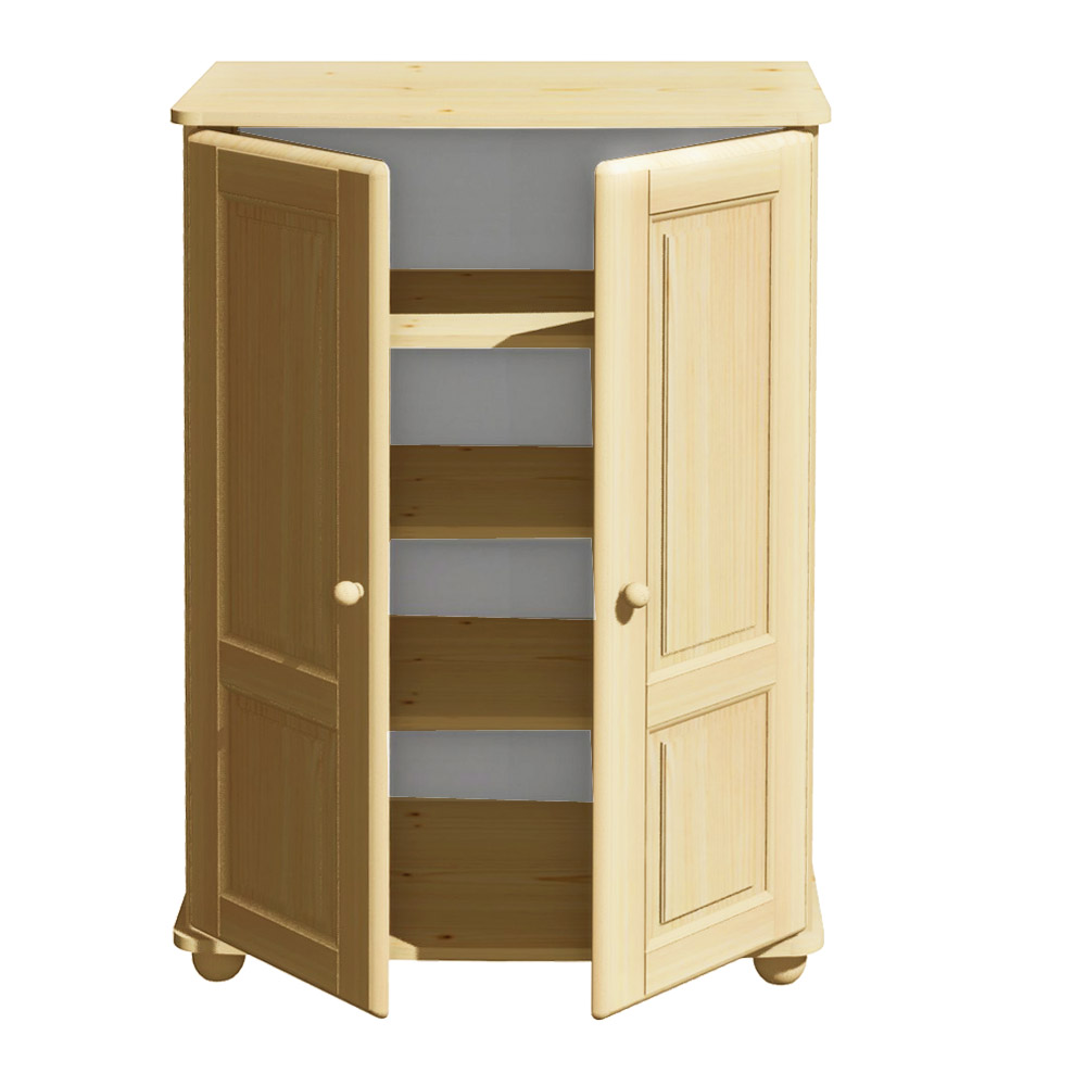 Шкаф стоит на круглых, крепких ножках, изготовленных так же из массива сосны.