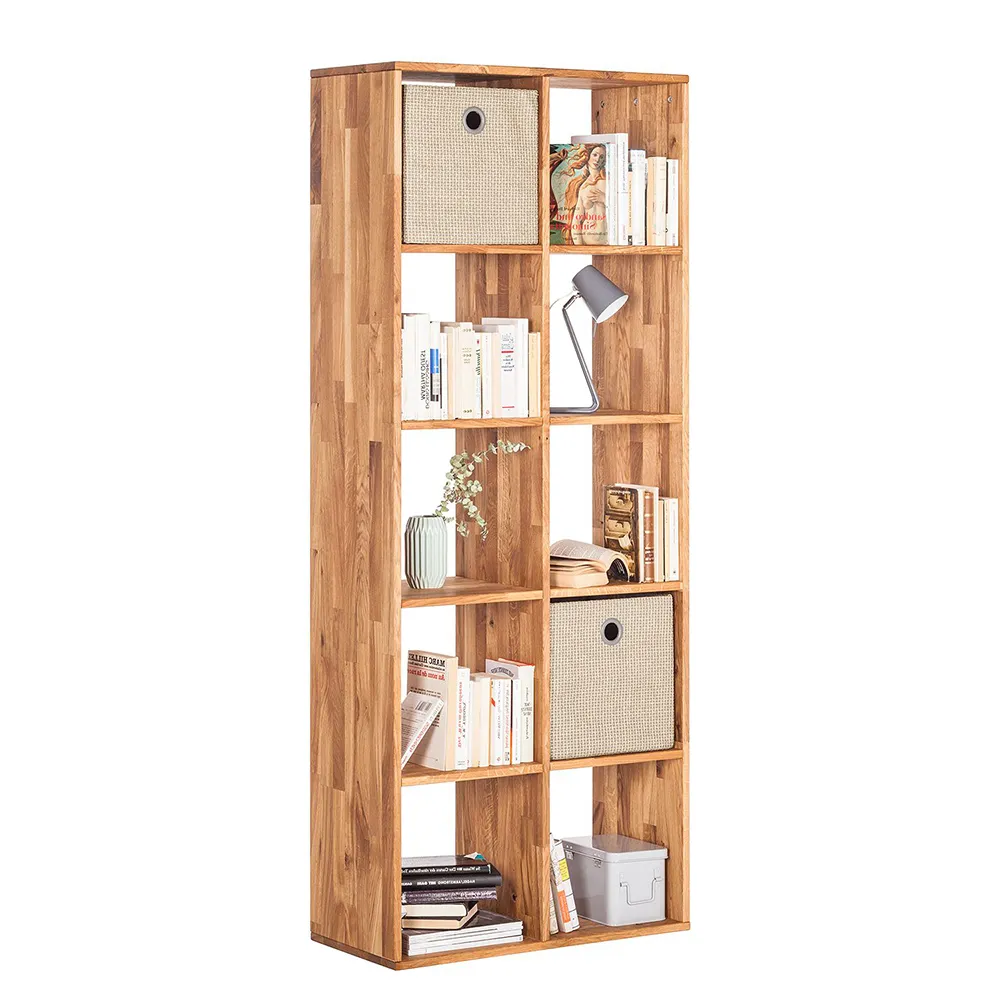 Стеллаж изготавливается из натурального долговечного материала – массива дуба. Дерево имеет красивую текстуру и приятно на ощупь. У стеллажа десять открытых полок. Он поставляется в разобранном виде, в двух упаковках. Размеры стеллажа 760х350х1870 мм, вес 54 кг. Гарантия на изделие – 1 год.