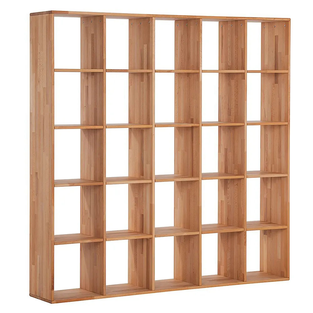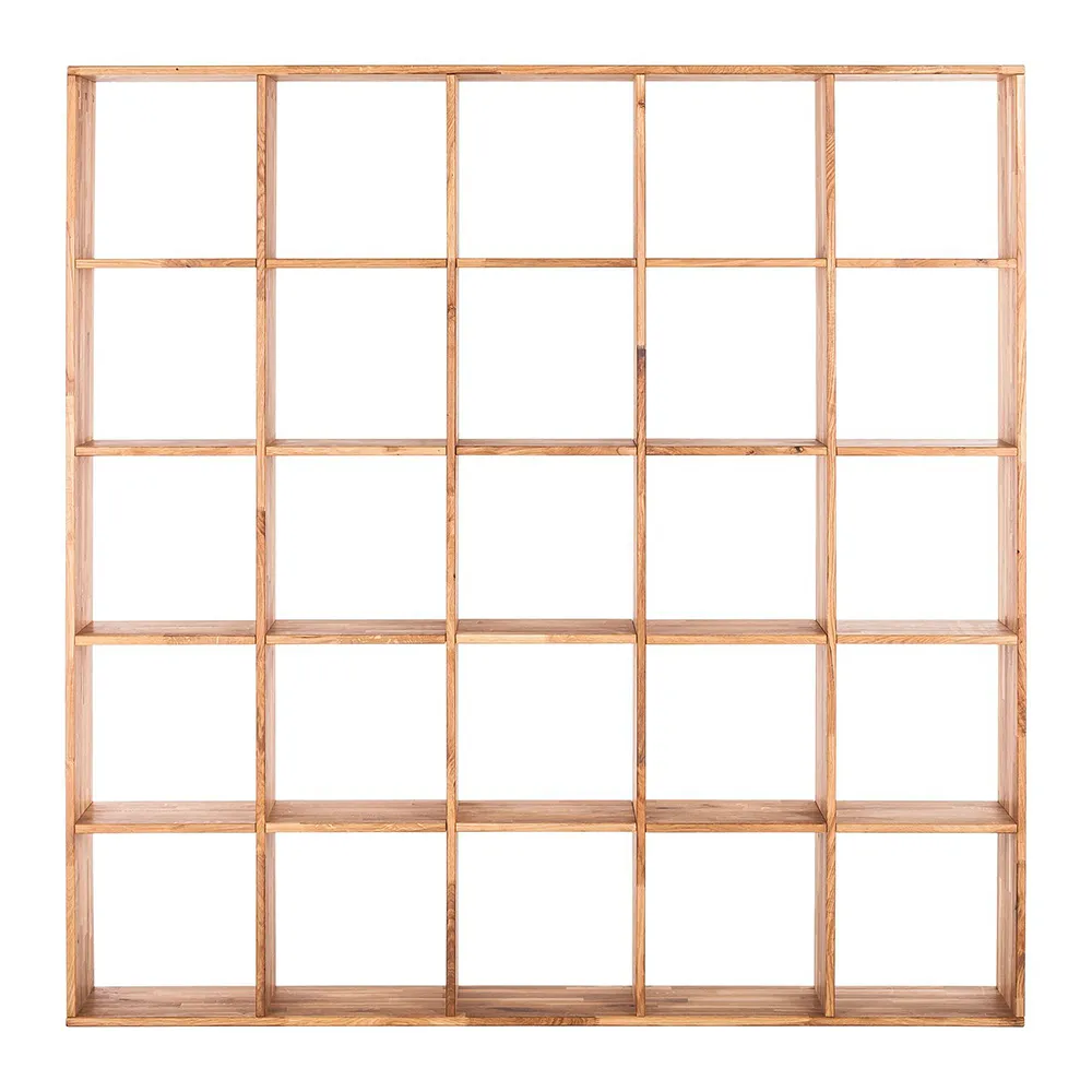 Сквозной стеллаж изготавливается из натурального долговечного материала – массива дуба. Дерево имеет красивую текстуру и приятно на ощупь. У стеллажа двадцать пять открытых полок. Он поставляется в разобранном виде, в двух упаковках. Размеры стеллажа 1870х350х1870 мм, вес 107 кг. Гарантия на изделие – 1 год.