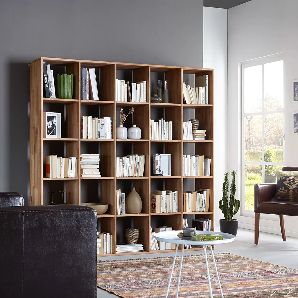 Большой напольный стеллаж «Грапвуд 5х5» предназначен для хранения книг, канцелярских предметов, сувениров. На полки также можно поставить вазы с цветами или комнатные растения. Доступно 6 вариантов отделки: бейц-масло, дуб отбеленный, дуб венге, дуб паркетный, темная вишня, итальянский орех.