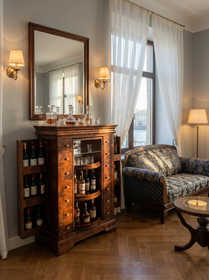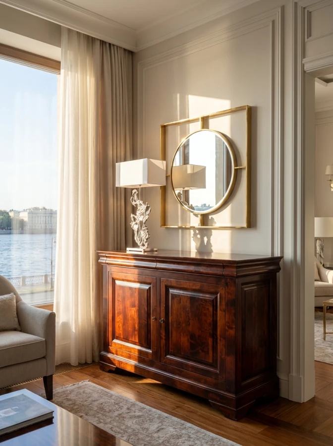 Коллекция мебели для гостиной «Луи Филипп» выделяется элегантным классическим дизайном с плавными скругленными линиями и красивыми спокойными цветами. В коллекции много разных предметов для гостиной: обеденные и журнальные столы, стулья, комоды, буфеты, витрины, зеркала, подставки для цветов.