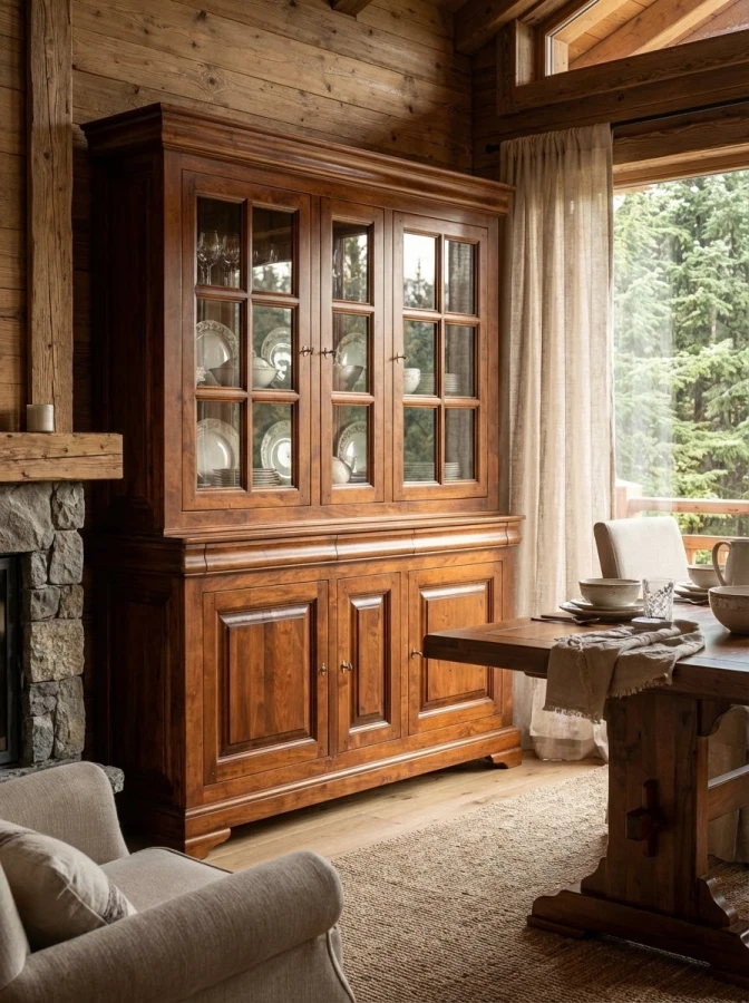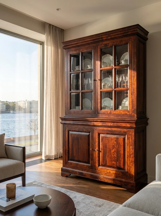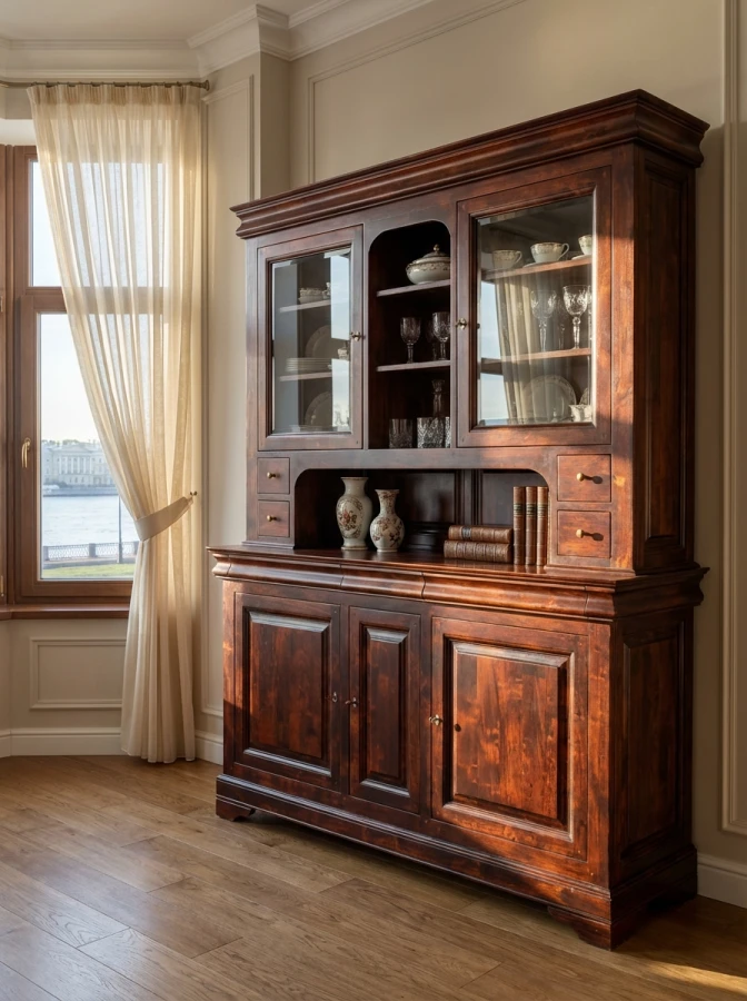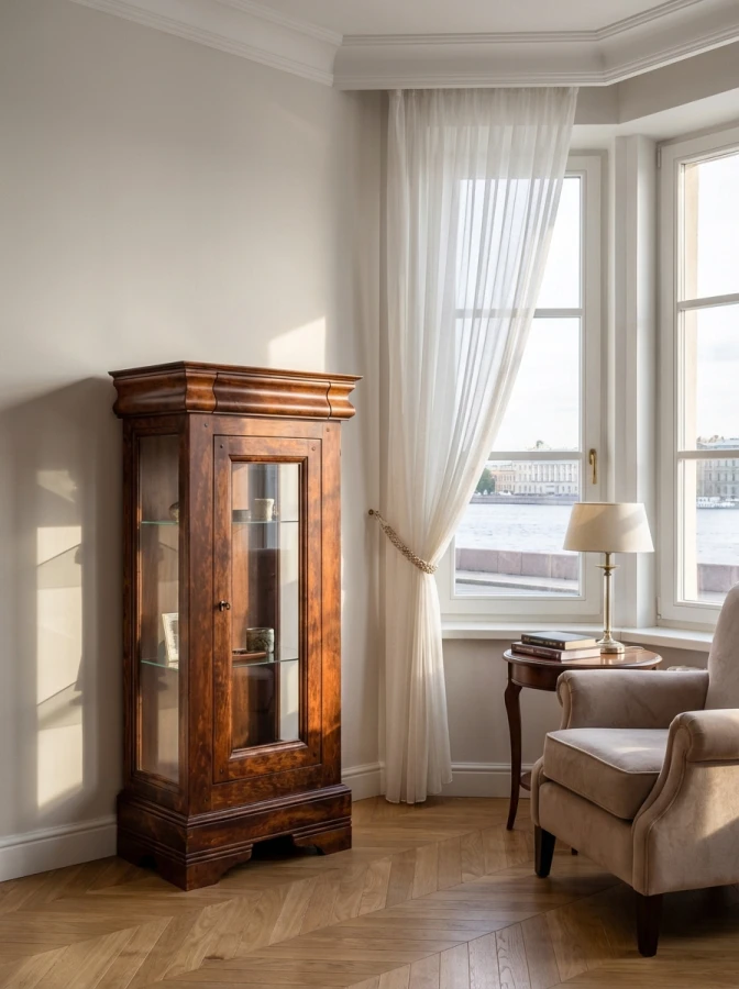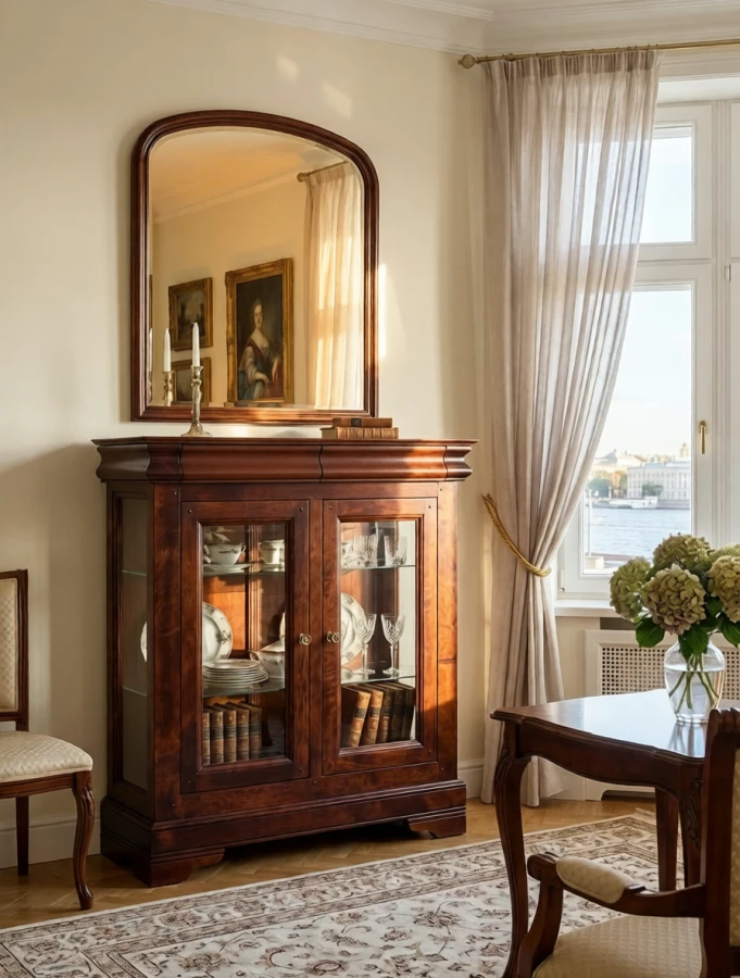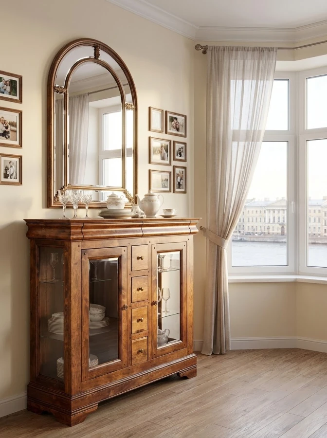 Шкаф из ольхи Луи Филипп с витриной ОВ 04