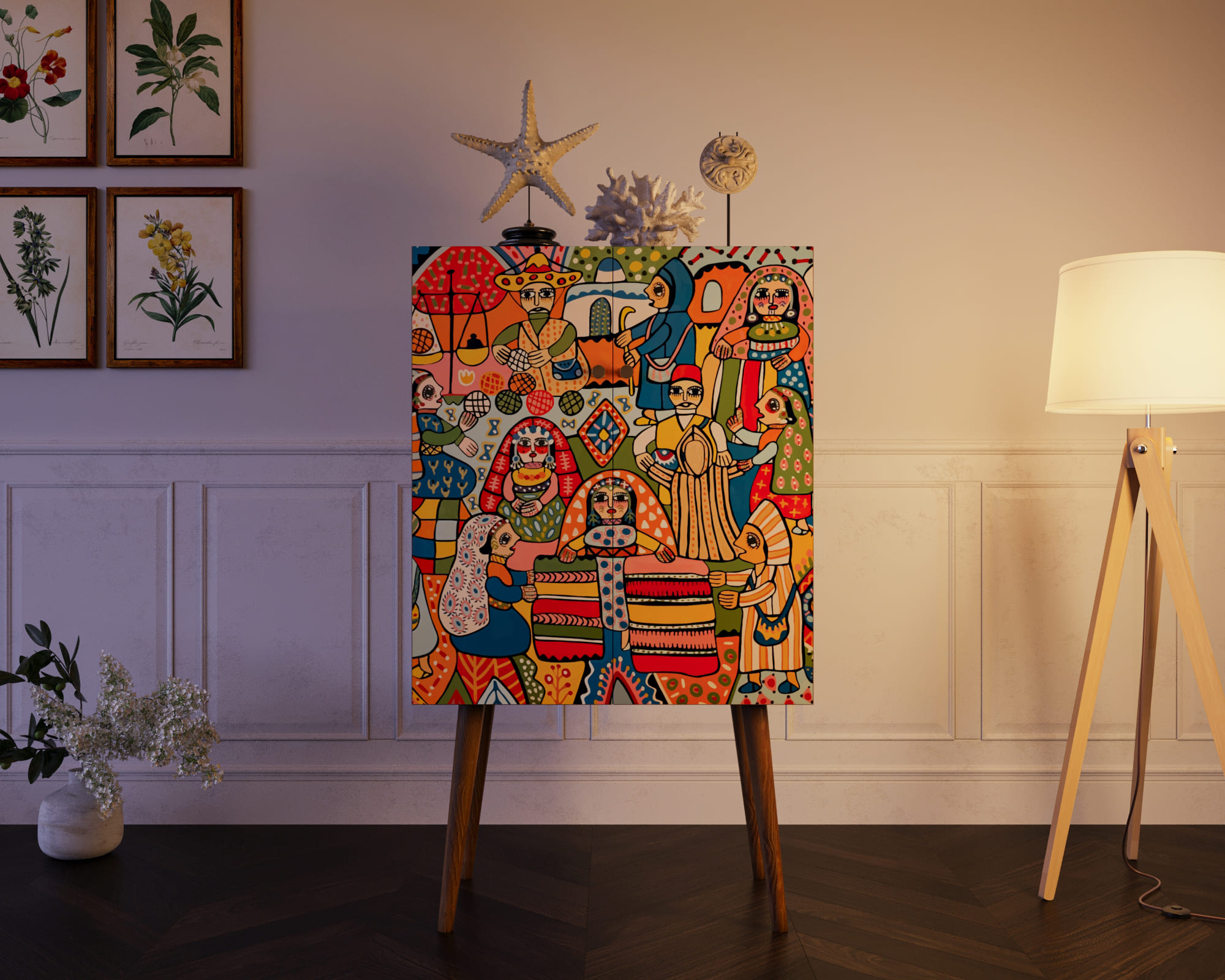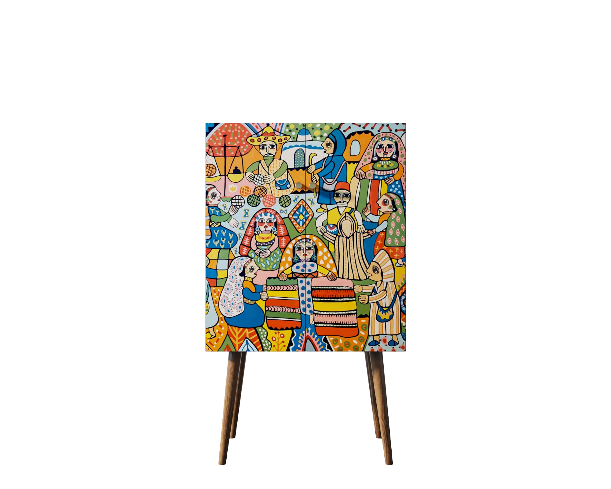 Комод "Berber"на высоких ножках из массива ясеня и дизайнерским принтом на фасаде будет акцентной вещью в вашем интерьере. Используйте его в прихожей, гостиной или спальне в качестве небольшого, но практичного места для хранения мелочей.