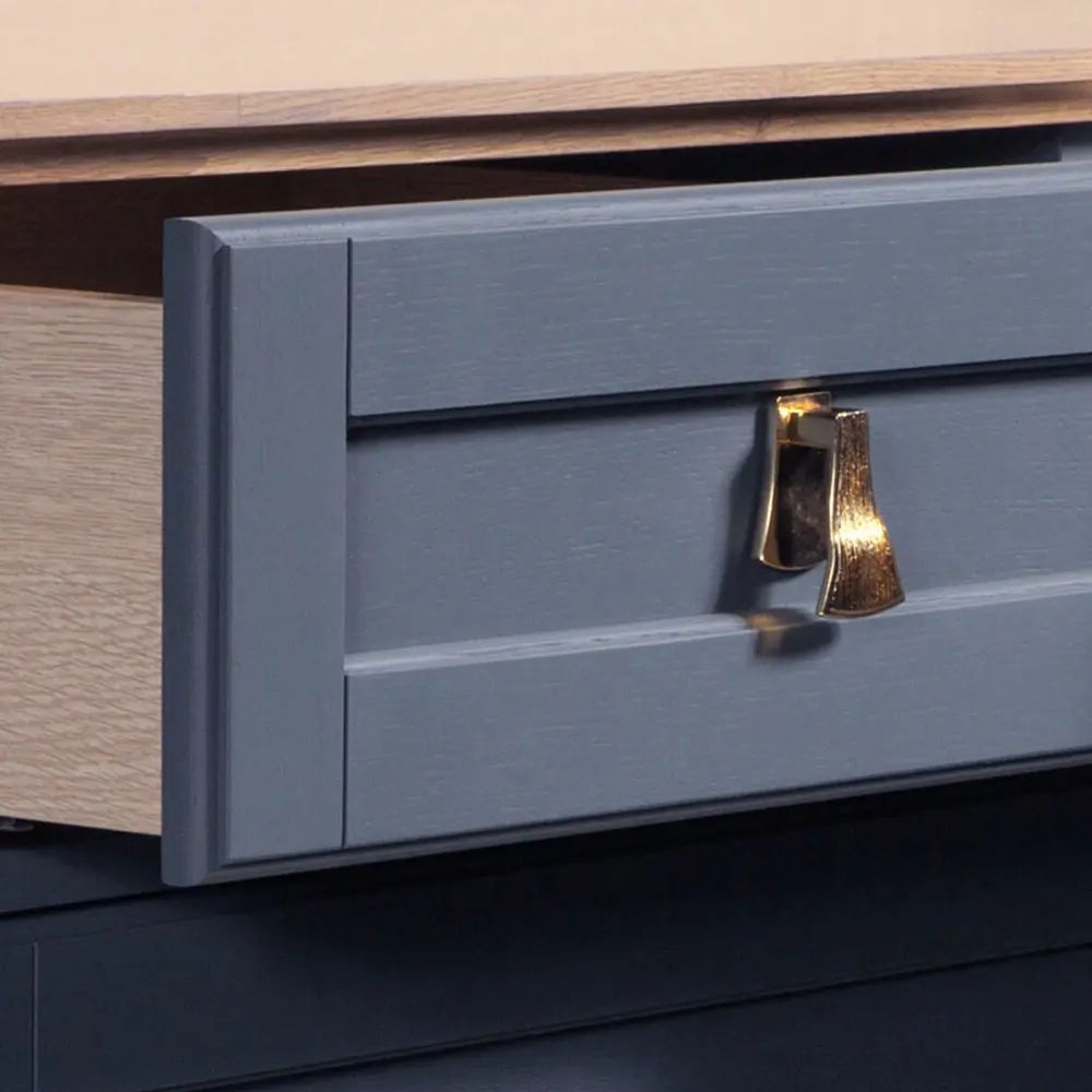 Наполнение комода включает два маленьких ящика, два больших ящика и высокие изящные ножки. Это позволяет удобно хранить различные предметы и аксессуары.