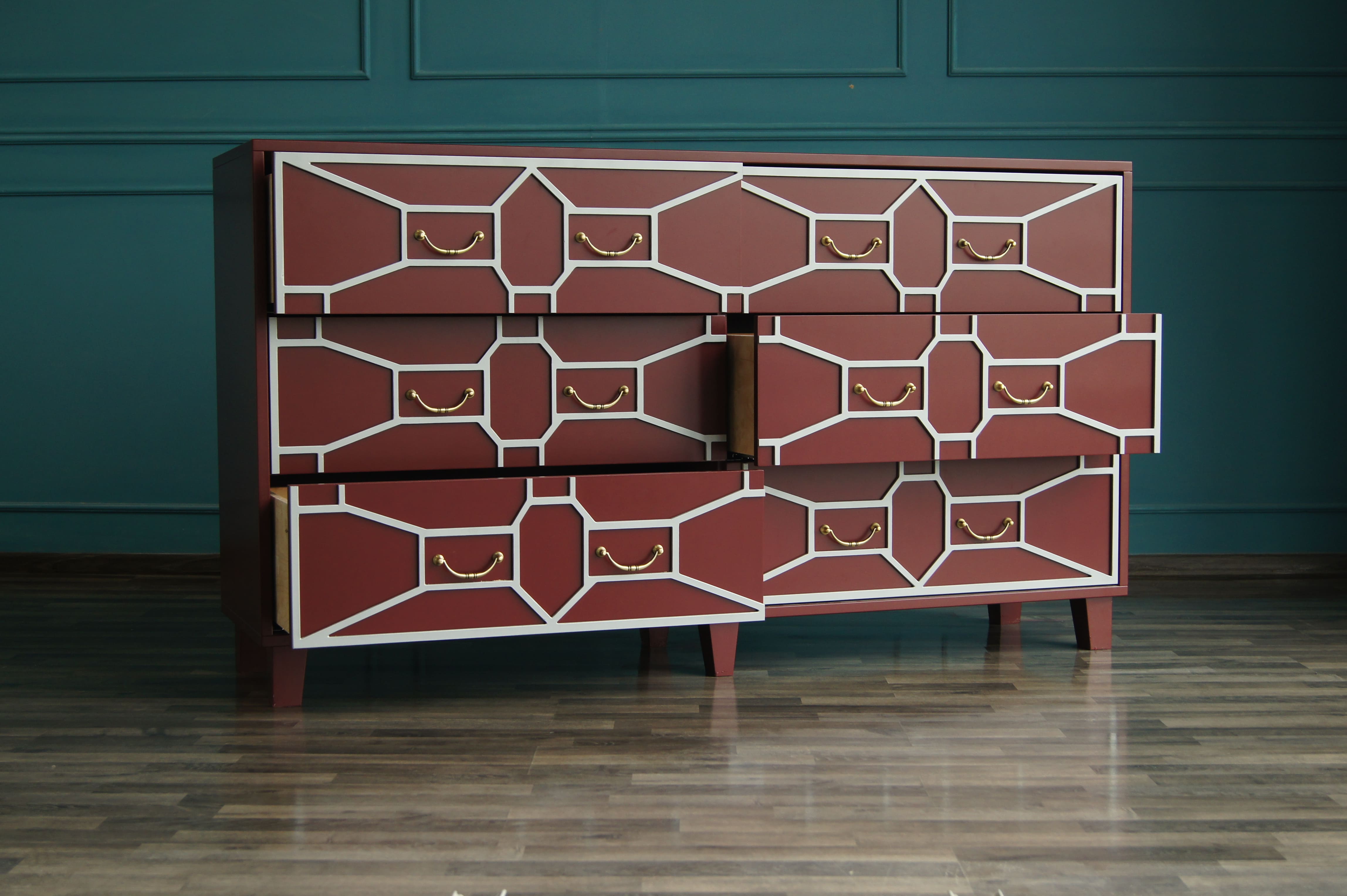 Комод 6 ящиков массив "Emerald" в изысканном бордовом цвете это история о сочетании минимализма