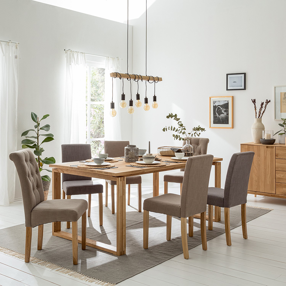 Стол изготовлен из натурального и долговечного материала – массива дуба. Доступно шесть вариантов отделки: бейц-масло, дуб отбеленный, дуб паркетный, дуб венге, тёмная вишня и итальянский орех. Вы можете выбрать тот вариант, который лучше всего подойдёт к вашему интерьеру. Стол имеет устойчивые рамочные опоры. При этом между опорами и столешницей есть зазор, поэтому стол не выглядит тяжеловесным. Габариты стола 1800х1000х750 мм, вес 53 кг. Поставляется в разобранном виде. Гарантия на стол составляет 1 год.